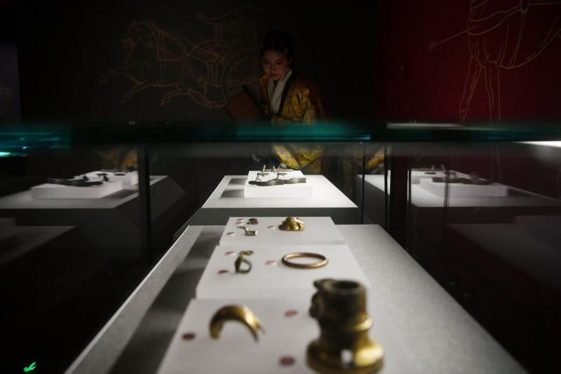 除此之外,展览第二部分的“金锡之贡”单元也格外亮眼。展出的黄金器物涵盖褭蹏金(马蹄金)、麟趾金、金饼等完整品类,纯度高达99%。底部刻有“上”“中”“下”铭文的马蹄金与麟趾金,以精湛的花丝镶嵌工艺铸就,既是汉武帝时期的祥瑞纪念币,更暗藏着森严的等级秩序。